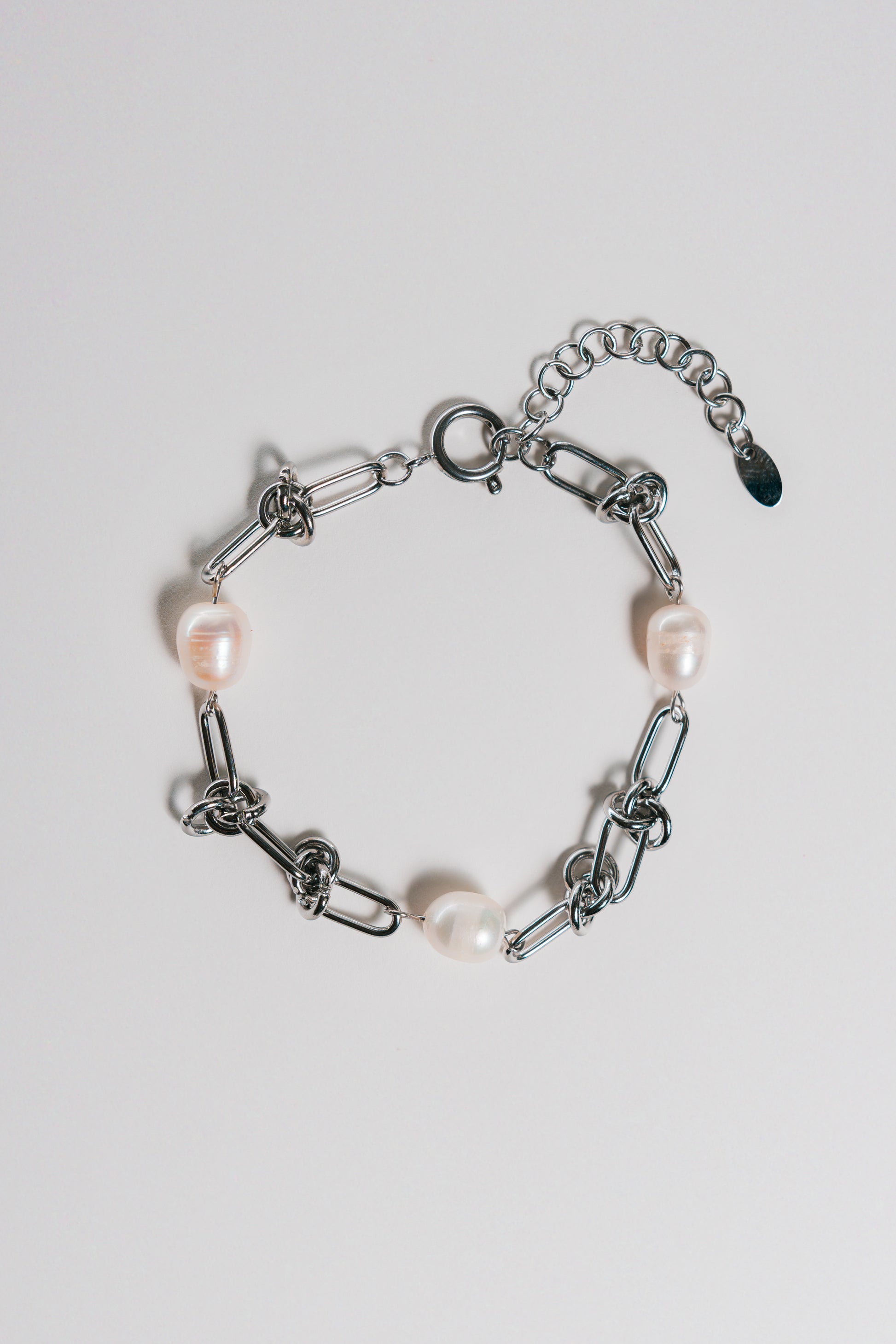 A twist on the classic pearl bracelet, this edgy design features lustrous freshwater pearls anchored between bold knotted chain links, available in gold or silver. Adjustable for the perfect fit, it is made to be worn solo or stacked.
